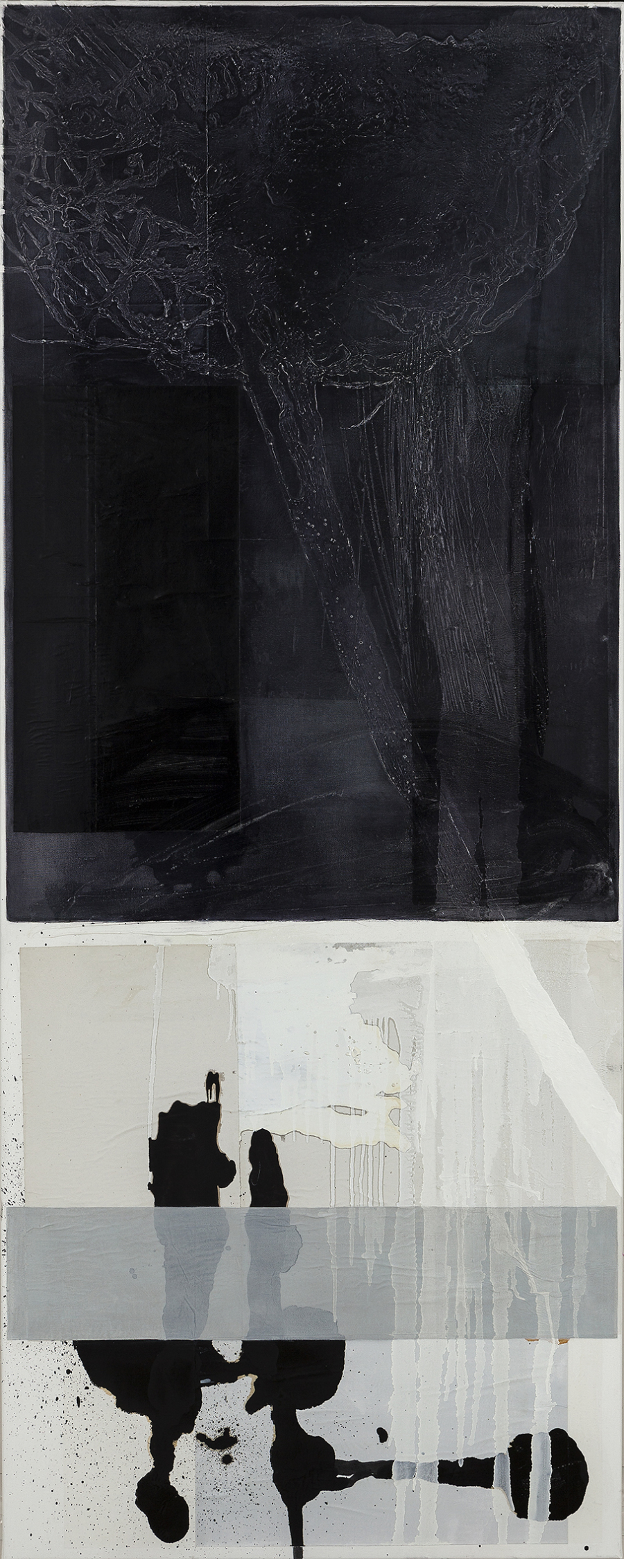 Birgitte created fifteen large-scale paintings built from layers of white, with asphalt, gold, and flashes of almost fluorescent blue, the asphalt acting like calligraphy across the surface. It was the beginning of what would become her signature approach: works constructed in multiple layers of texture and material, building new "landscapes" on canvas.