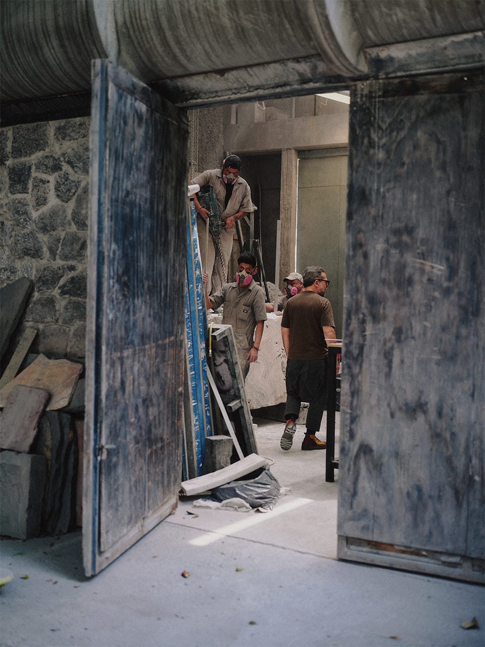 Reyes describes his practice as a system of “planets.” Disarmament is one planet, the long-running work of transforming weapons into instruments and tools for collective action. Architecture and design form another. Publishing and the stewardship of his 40,000 volume library constitute a third. Stone carving stands as an entire planet of its own. Theatre, puppetry, mental health initiatives, and nuclear documentaries occupy their own orbits. Each operates with its own gravity.
